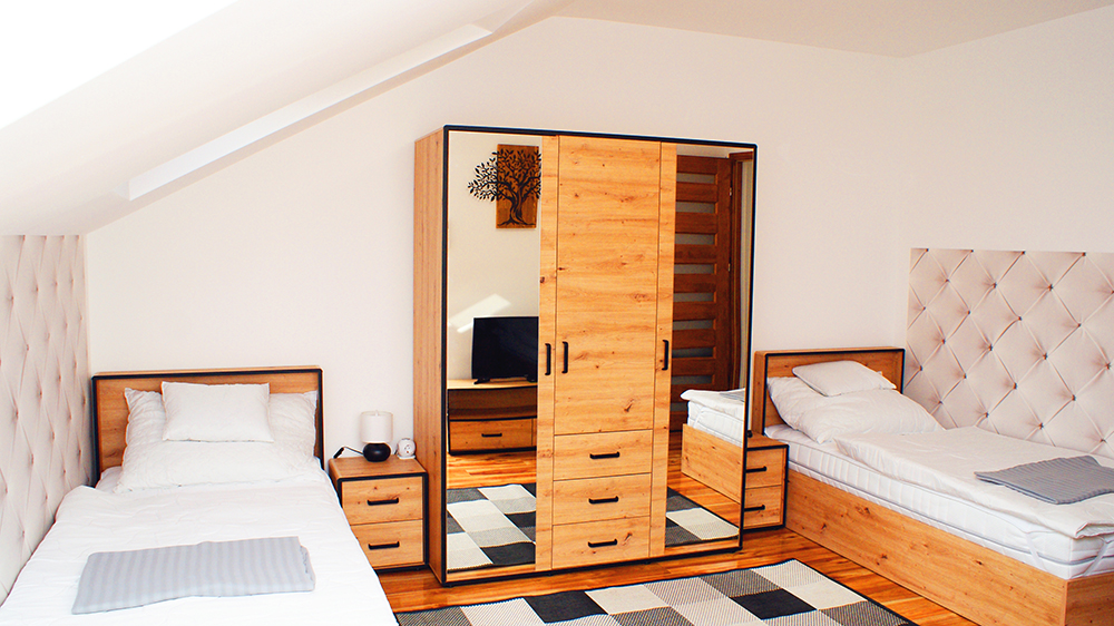 Klíma, TV, gardróbszekrény, kényelmes ágyak